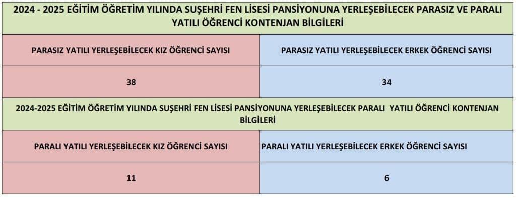 2024-2025 Öğretim Yılı Pansiyon Kontenjan Bilgileri için lütfen aşağıdaki bağlantıya tıklayınız.